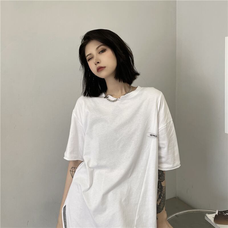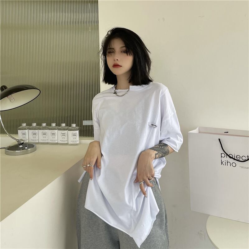 夏服ラウンドネックルーズゆったりTシャツ コットン 夏物 Oネック ステッチ CHIL77208669543