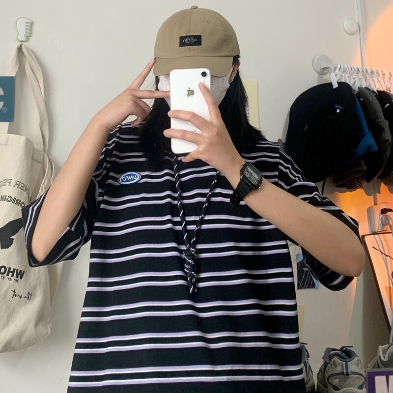 ストライプシャツ レディース夏服トレンドTシャツルーズメンズ 夏物 CHIL56967340841