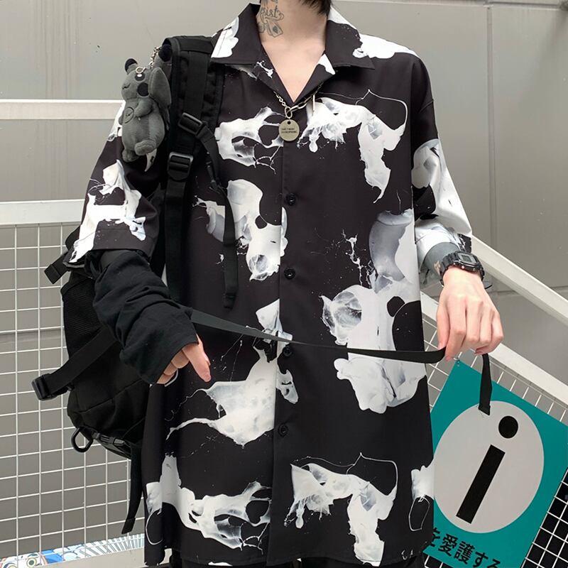 シャツ レディース夏服スタイルダークカラープリントルーズ 原宿 夏物 CHIL26208829876