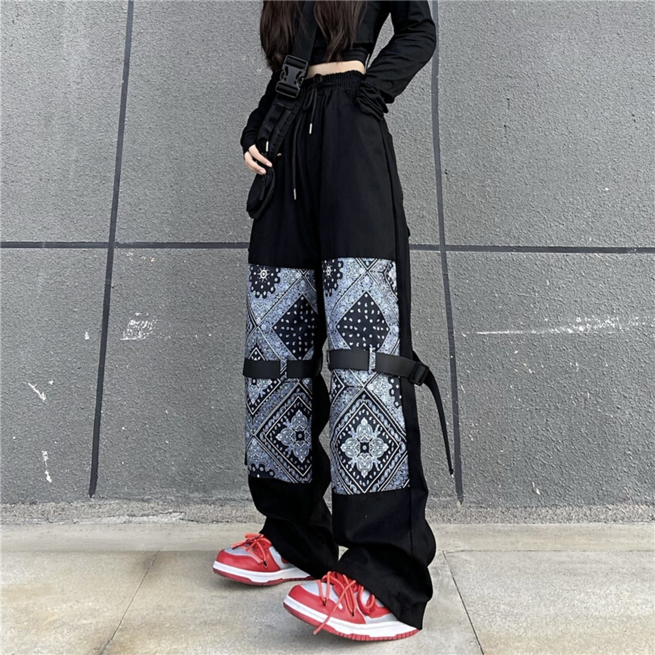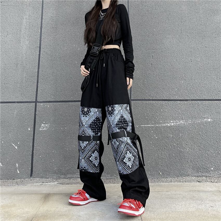 パンツ スプリング夏服Flowerデザイン ルーズカジュアルパンツ ストリート 春物 夏物 アジャスタブル フラワーデザイン ステッチ CHIL20031075503