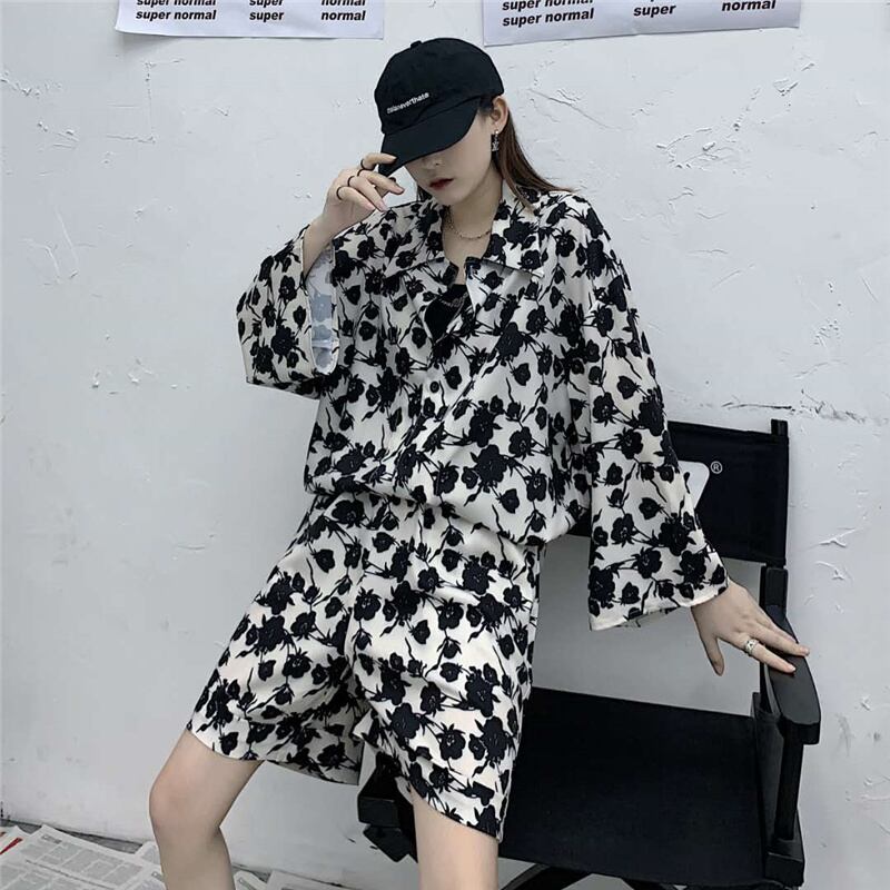 レディース夏服韓国ファッショントレンドフローラルスリーブシャツ ルーズショーツ 夏物 花柄 スタイル CHIL41421426306