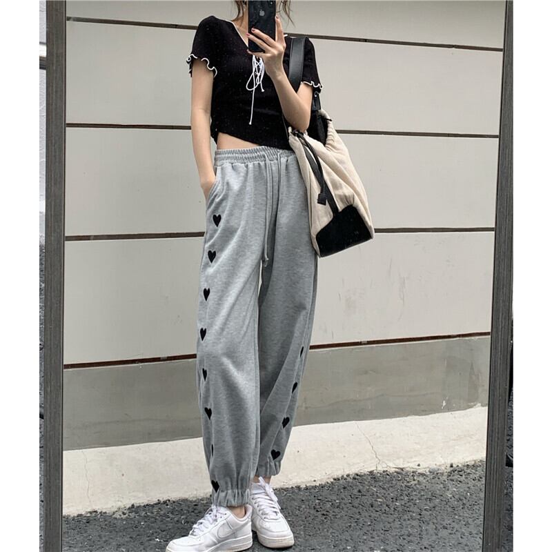 グレーパンツ スプリング夏服プリントハイウェストギャザールーズカジュアル 春物 夏物 ウエスト CHIL77287795850