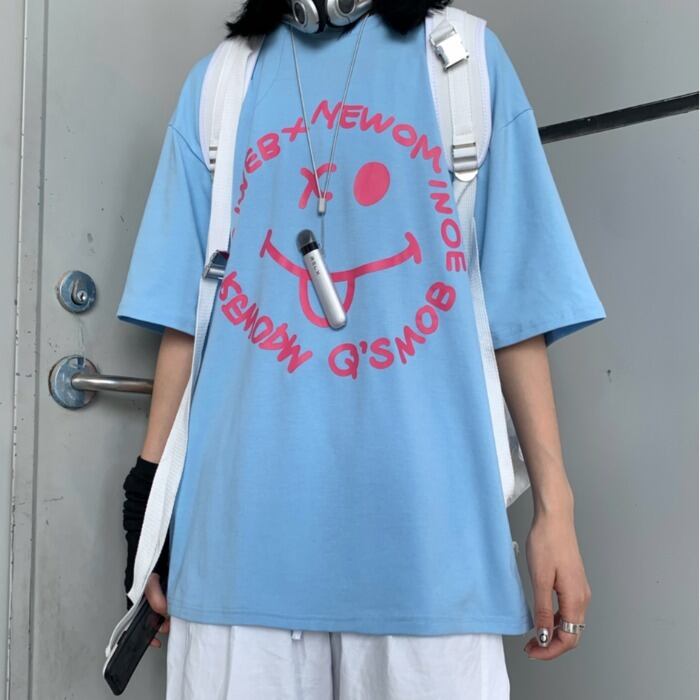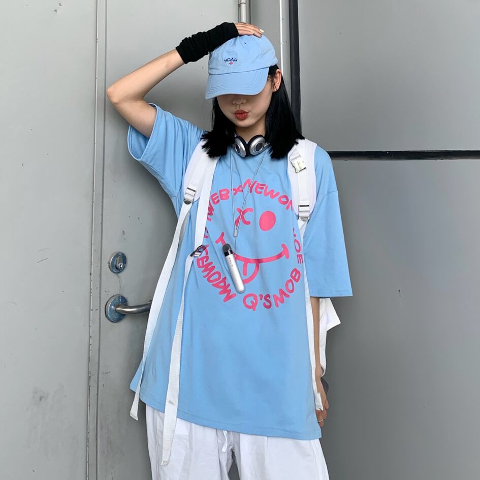 夏服トレンド韓国ファッションスタンダードプリント柄ルーズTシャツメンズレディース レトロ 大人ガーリー スウィート キュート カジュアル 夏物 スタイル CHIL33940396791