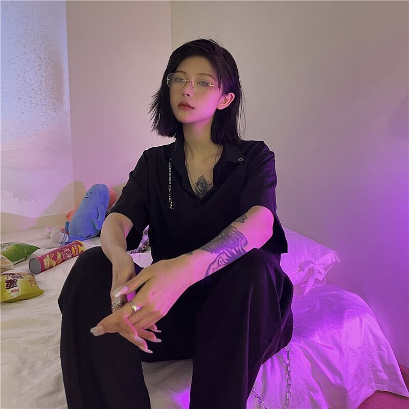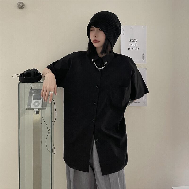 ブラックシャツ レディース夏服スタイルダークメタルチェーン ルーズ 原宿 夏物 CHIL74788911782