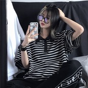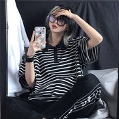 ストライプシャツ レディースメンズ夏服ルーズ薄手トップス 夏物 CHIL4275923262