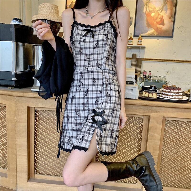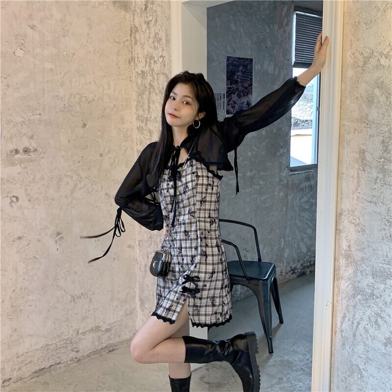 スプリング夏服ショートサイドスリットワンピースブラックレースブラウス レディース 春物 夏物 CHIL76027786362