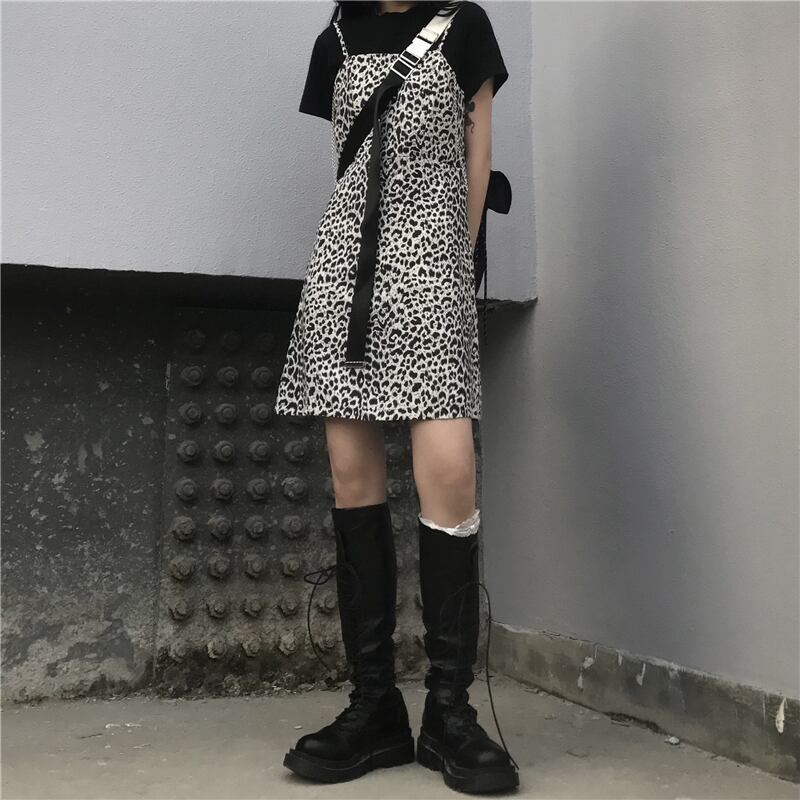 韓国ファッション夏服スタンダードスカート トレンドダークレオパードプリント柄ワンピース レトロ 夏物 CHIL86668567281