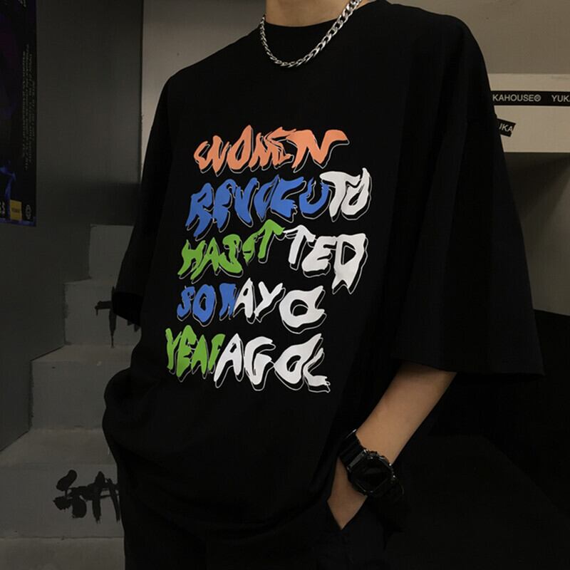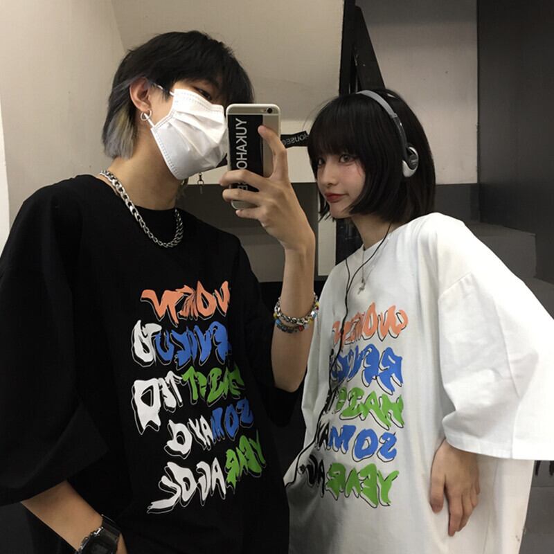 夏服韓国ファッショントレンドプリントルーズTシャツトップス レディース 原宿 夏物 ボーイズ スタイル CHIL47529772335
