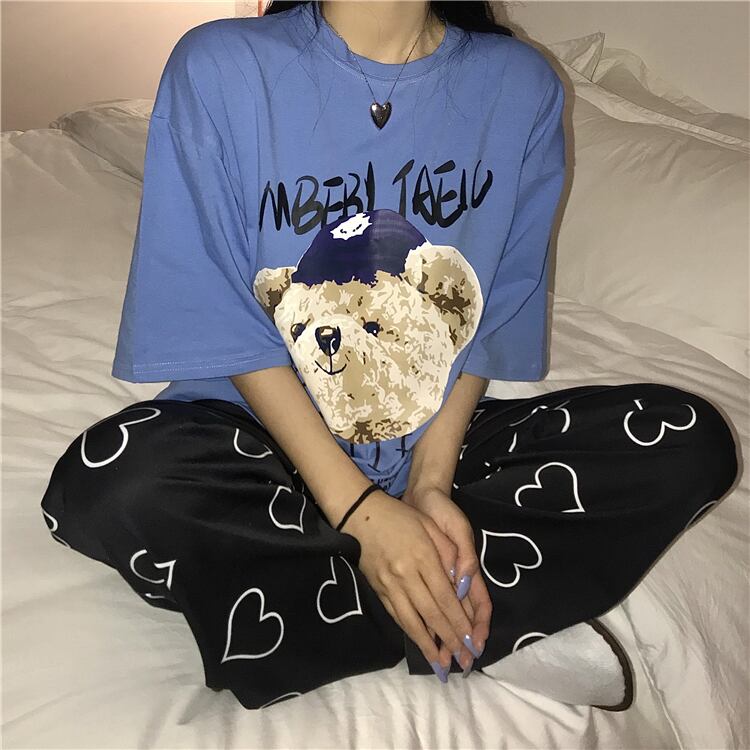 カジュアルブラックプリントパンツ 原宿 CHIL4825314983