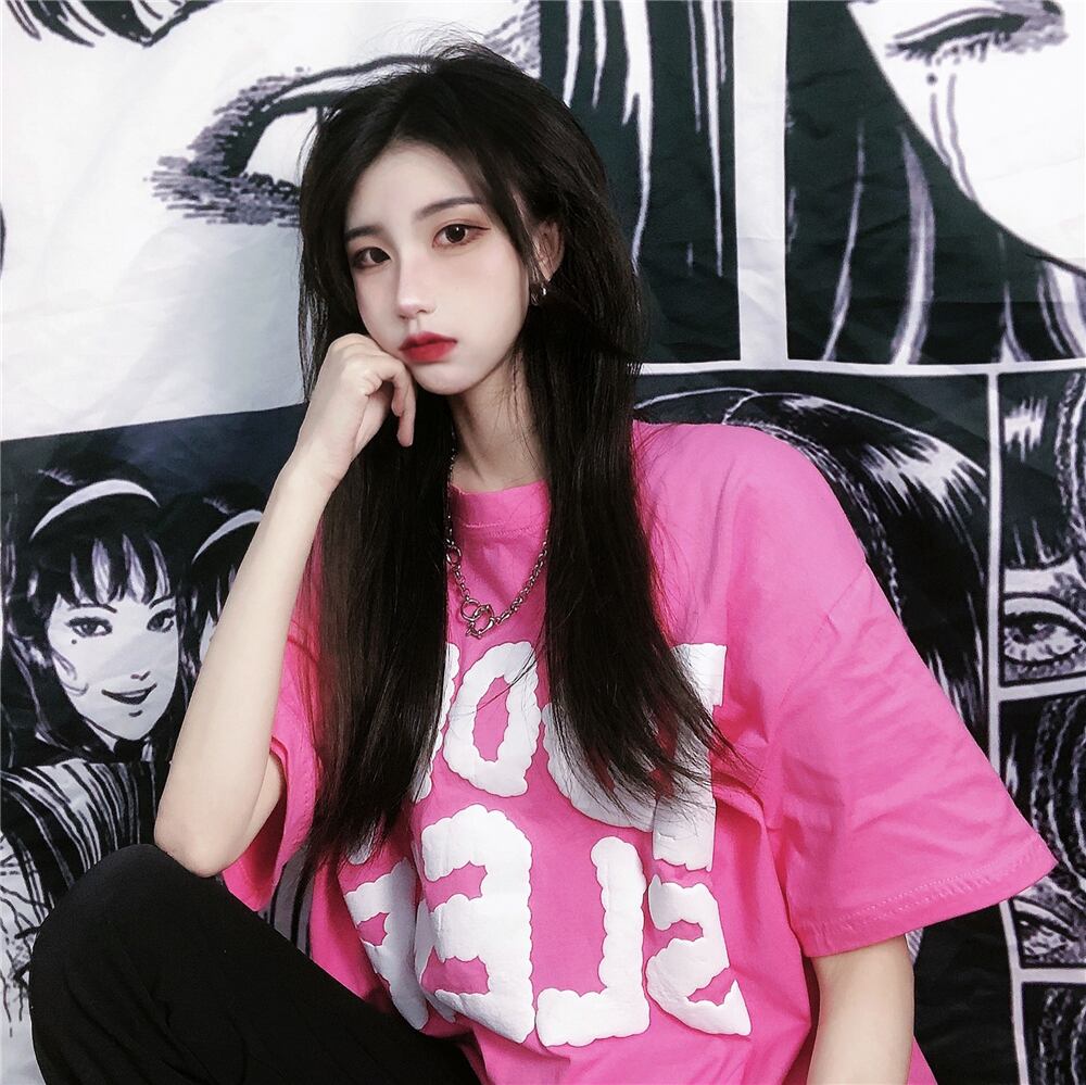夏服韓国ファッショントレンドスタイルトップス ルーズTシャツレディース ピンク 原宿 夏物 CHIL39337835588