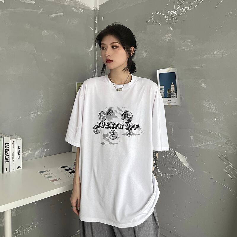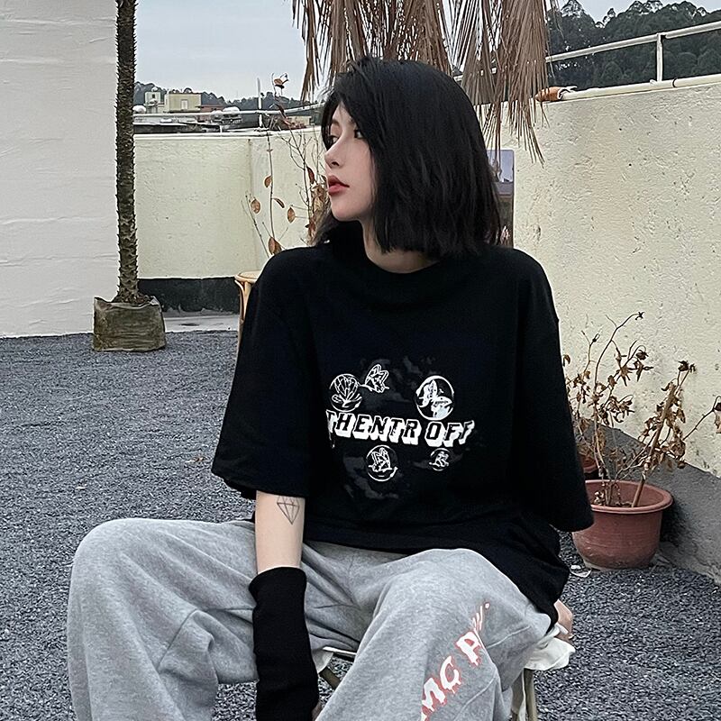 夏服韓国ファッショントレンドスタイルスタンダードButterflyデザイン プリントルーズTシャツレディース レトロ 原宿 夏物 CHIL44258826926