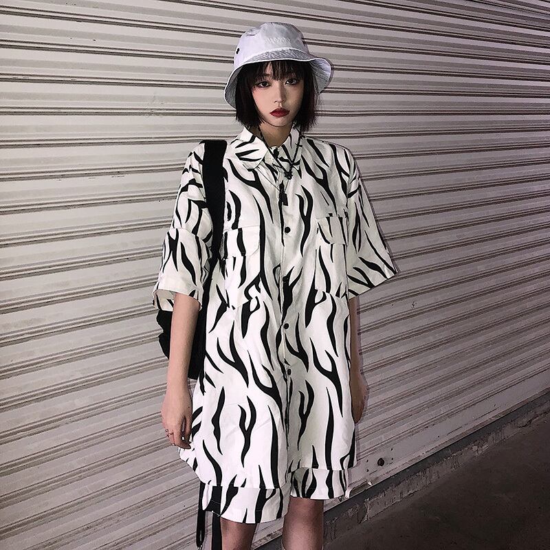 夏服スタイルプリント柄半袖スリーブシャツ トップス ルーズパンツ ショーツ セット ショート ハーフスリーブ 原宿 夏物 CHIL30703634645