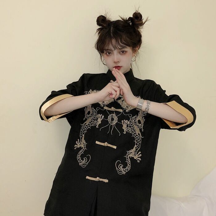 夏服刺繍ルーズスタンダードシャツ レディース レトロ 夏物 ボーイズ CHIL51941768434