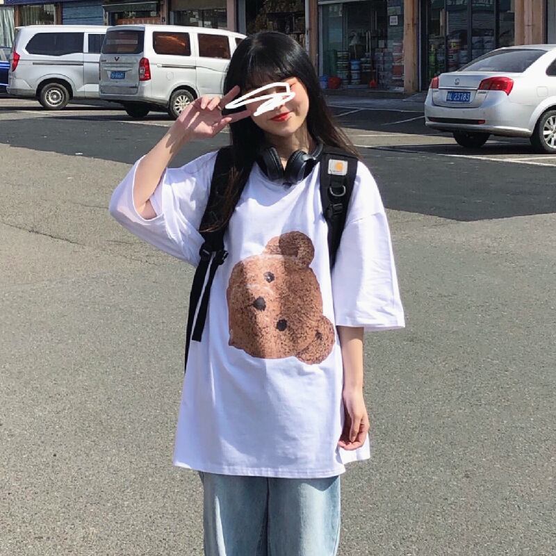 レディース夏服韓国ファッショントレンドプリント柄ルーズラウンドネックTシャツトップス メンズ ストリート 夏物 Oネック スタイル CHIL14857720558