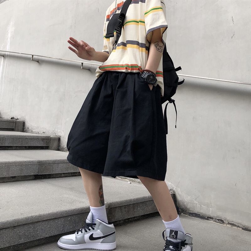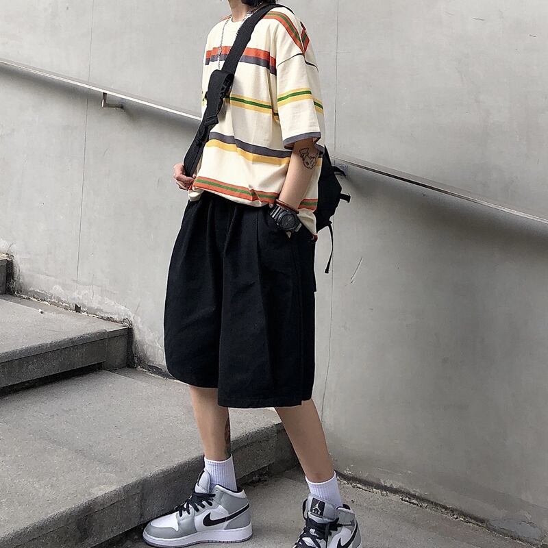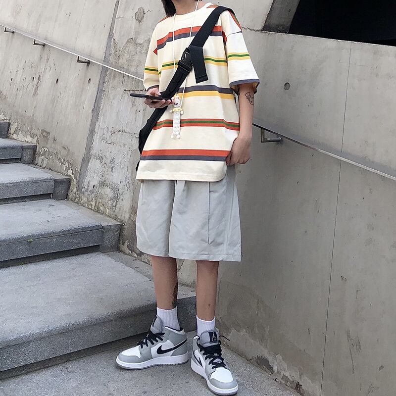 夏服韓国ファッションストライプTシャツルーズトレンドメンズレディースパンツ カジュアルショーツ 原宿 夏物 スタイル CHIL68214227054