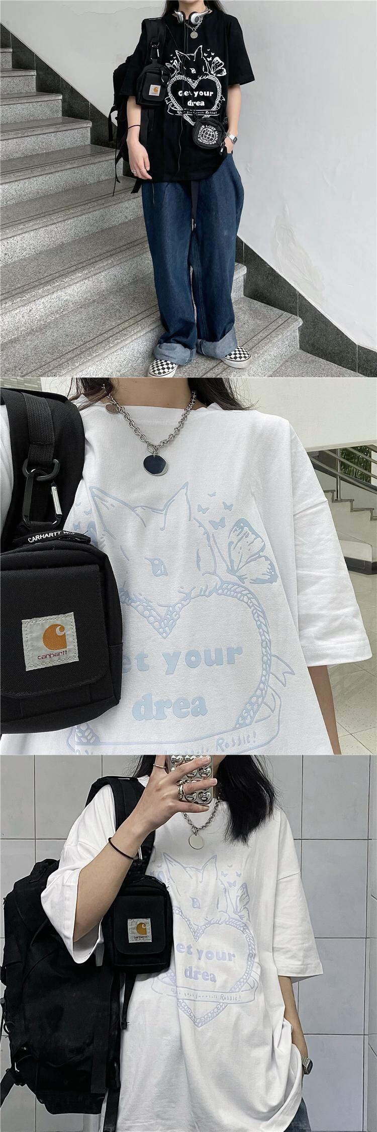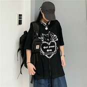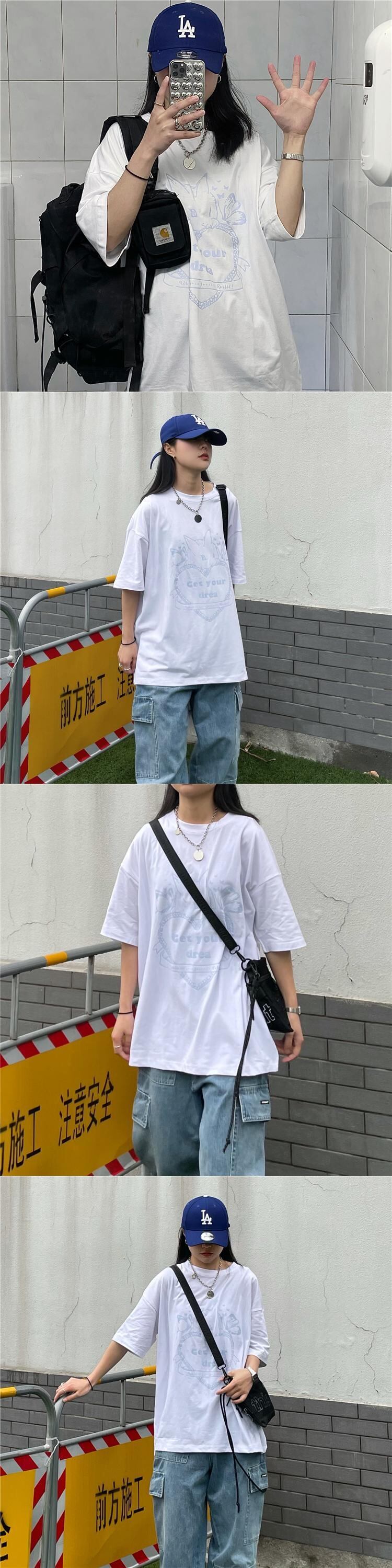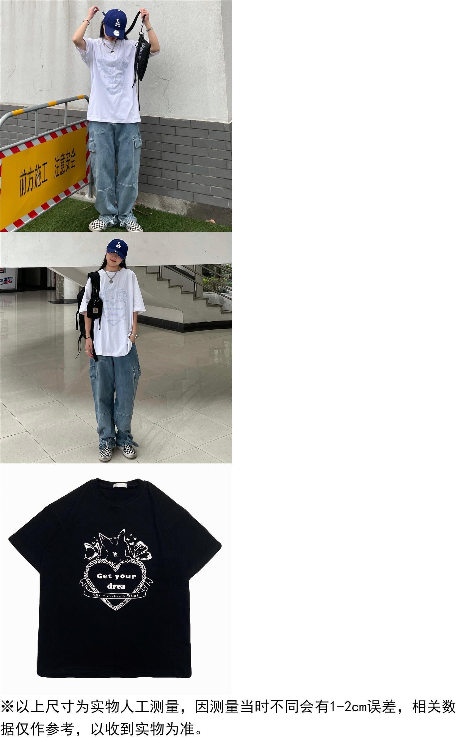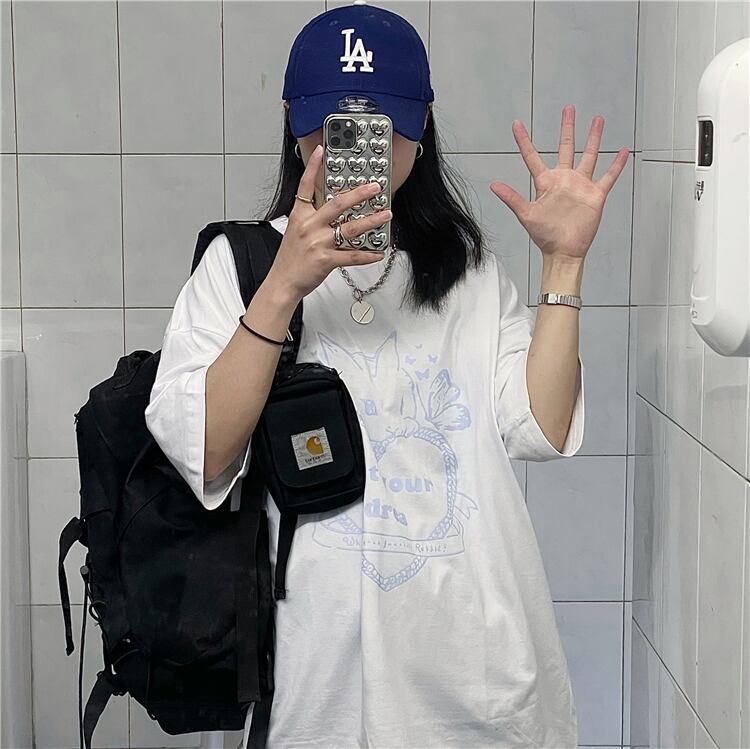 レディース夏服韓国ファッショントレンドスタンダードプリント柄ルーズラウンドネックメンズTシャツ レトロ 夏物 Oネック CHIL6978881718