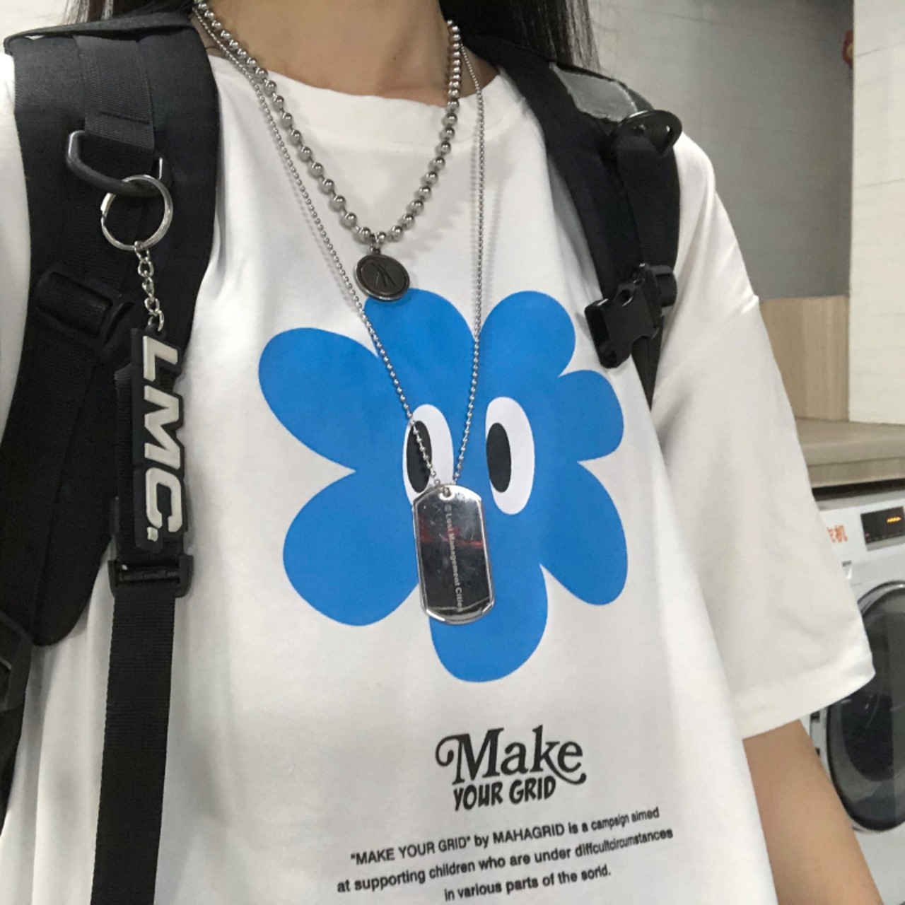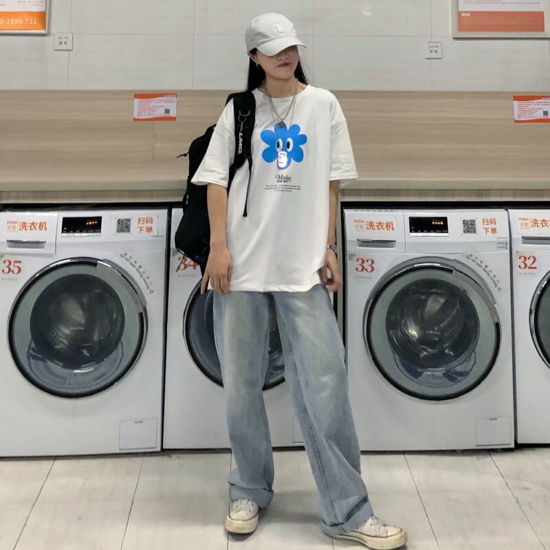 夏服スタイル韓国ファッショントレンドブルーFlowerデザイン プリント柄ルーズTシャツトップス 夏物 フラワーデザイン CHIL28687505946