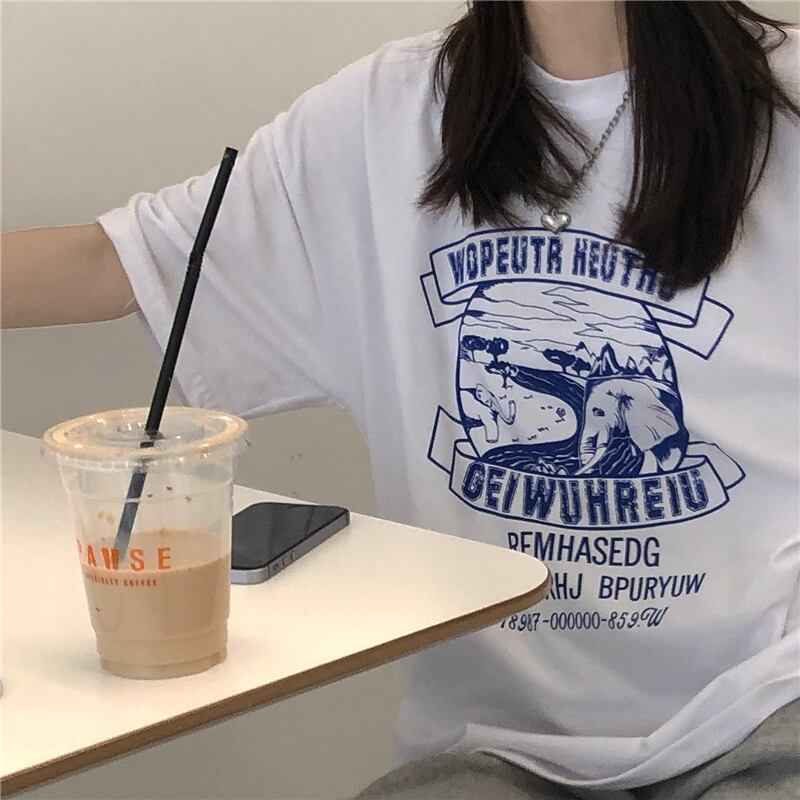 レディース夏服韓国ファッションスタンダードプリント柄ルーズTシャツ レトロ 夏物 スタイル CHIL30458746615
