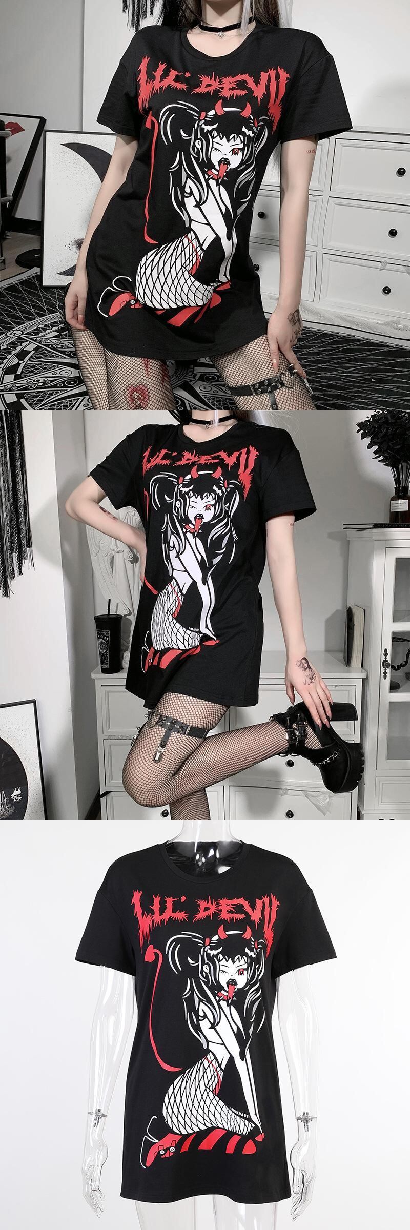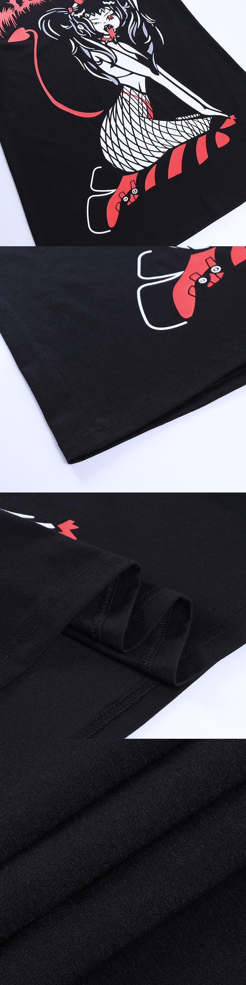 ダークプリントトップス ロングルーズ半袖スリーブTシャツワンピース ショート ハーフスリーブ ストリート YU5584502380