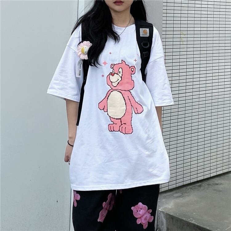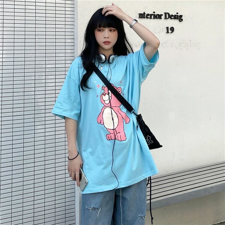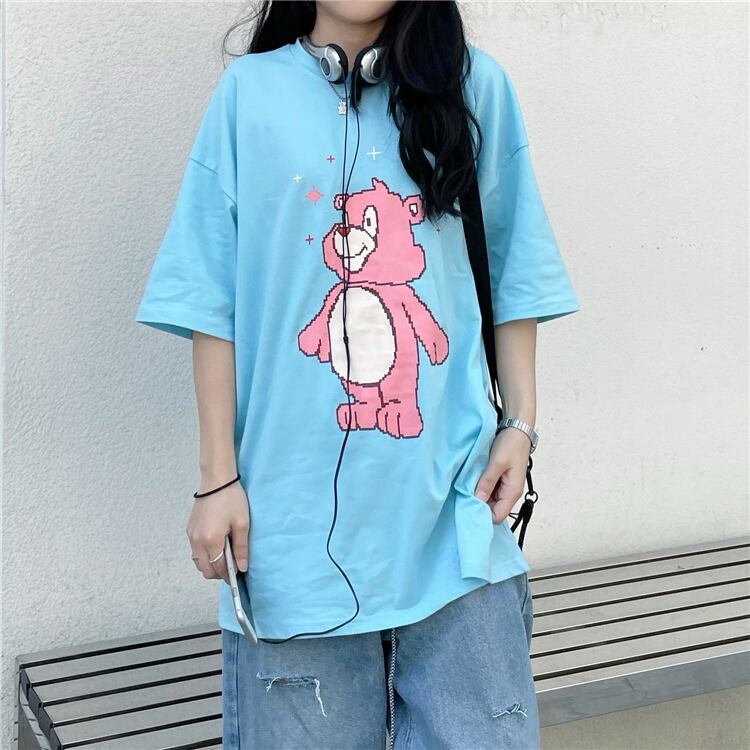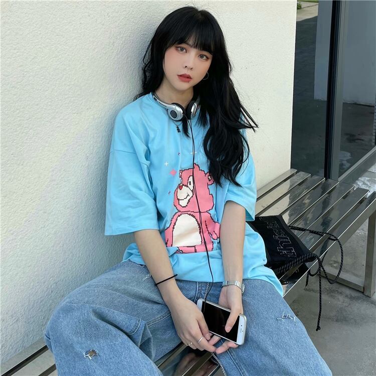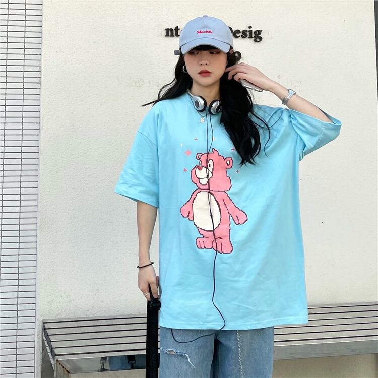 Tシャツレディース夏服韓国ファッショントレンドスタンダードルーズプリント柄トップス レトロ 夏物 CHIL70750905422