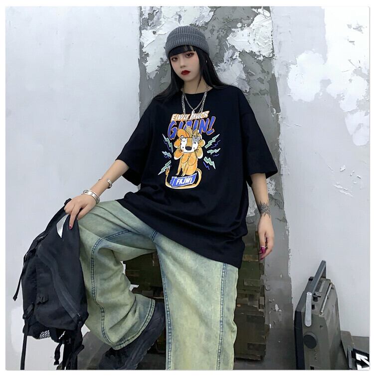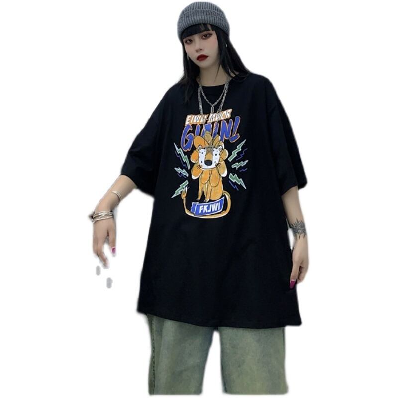 Tシャツレディース夏服韓国ファッショントレンドプリントルーズラウンドネックトップス コットン 夏物 Oネック ピュア スタイル CHIL86501262129