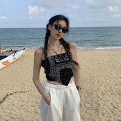 Flowerデザイン レディース夏服トレンドスタンダードパターンスリムショートカジュアル レトロ 夏物 フラワーデザイン CHIL19122463022
