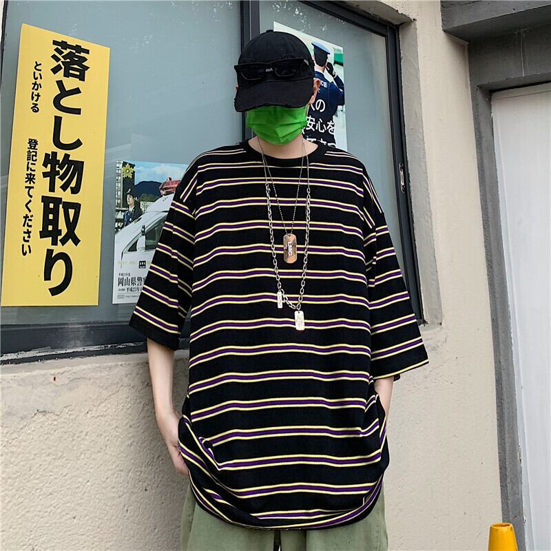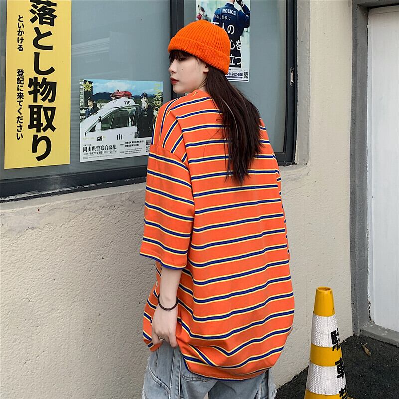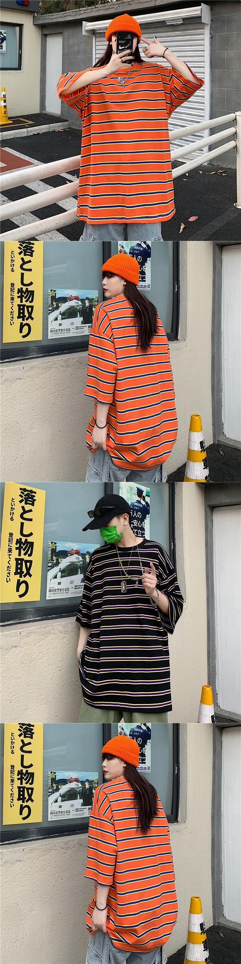ストライプトップス レディースメンズ夏服韓国ファッショントレンドスタイルルーズTシャツ 原宿 夏物 CHIL74627686957