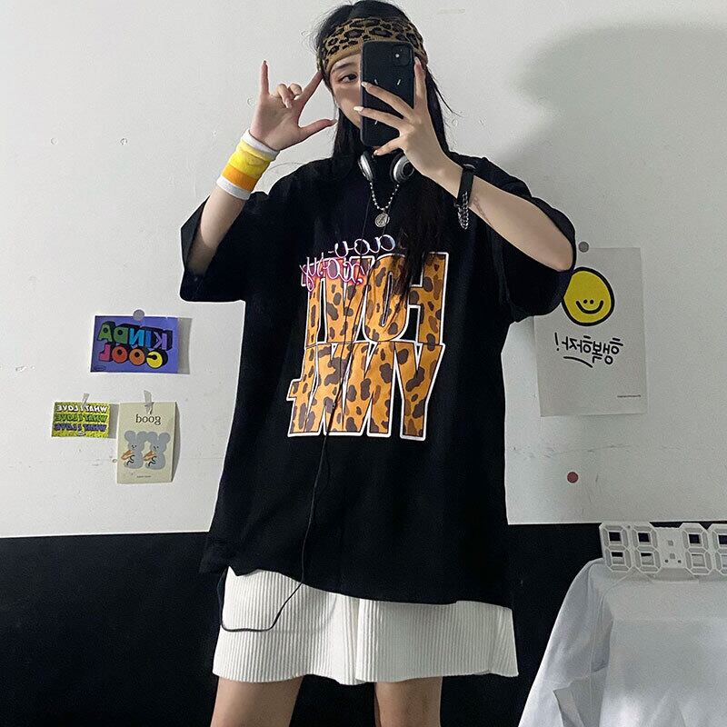 Tシャツレディース夏服韓国ファッショントレンドスタイルプリントルーズラウンドネックトップス 原宿 夏物 Oネック CHIL96766843114