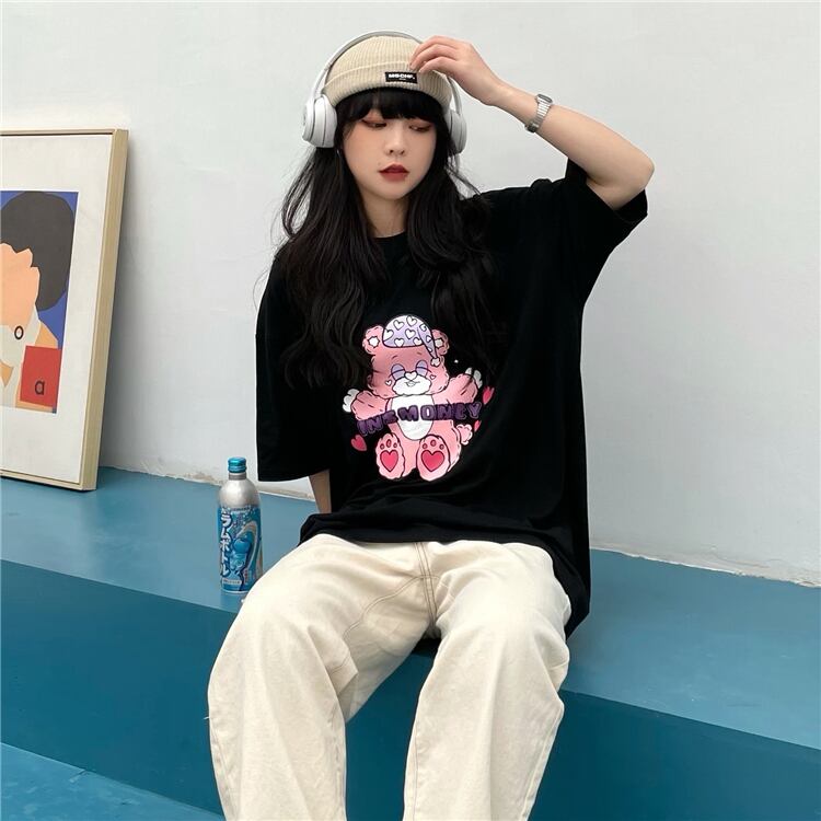 Tシャツレディース夏服韓国ファッショントレンドスタンダードプリント柄ルーズメンズトップス レトロ 夏物 CHIL80275668552
