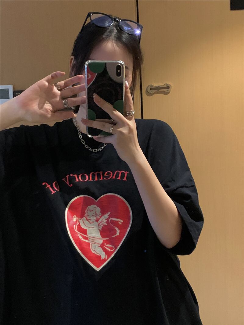 レディース夏服韓国ファッショントレンドパターンプリントルーズTシャツ 夏物 スタイル CHIL54062529924