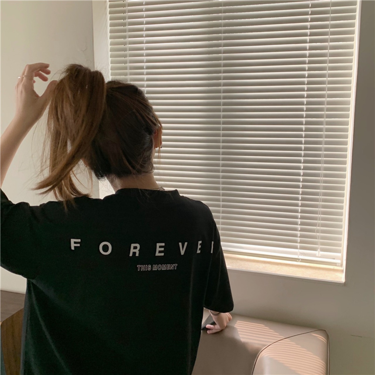 夏服韓国ファッショントレンドルーズカジュアルプリント柄ブラックTシャツレディーストップス 帽子 夏物 スタイル CHIL24474079591