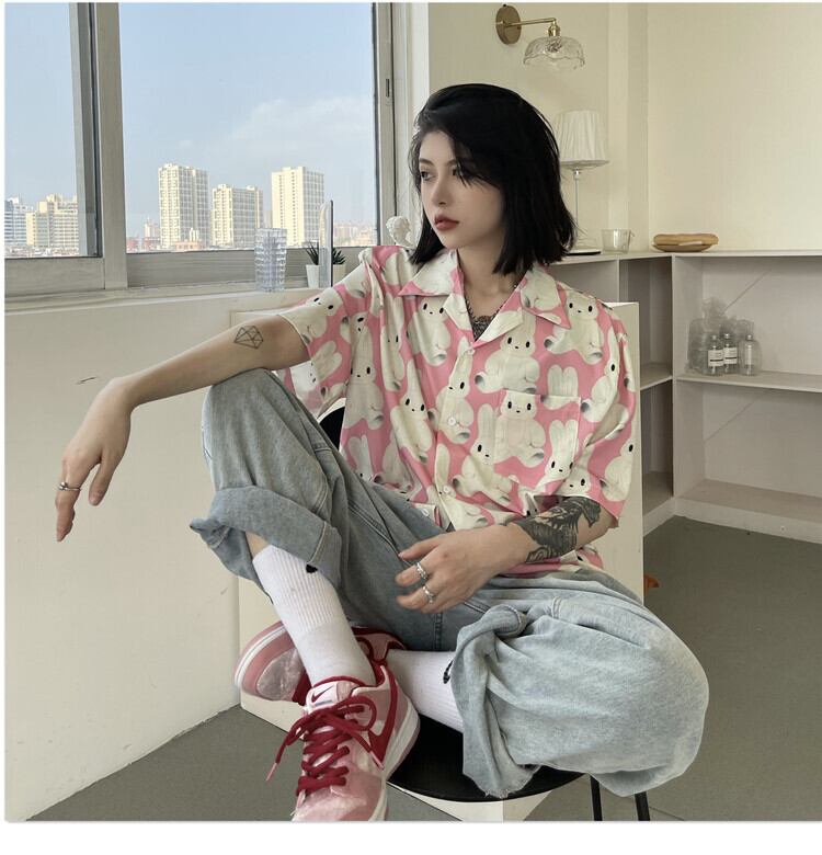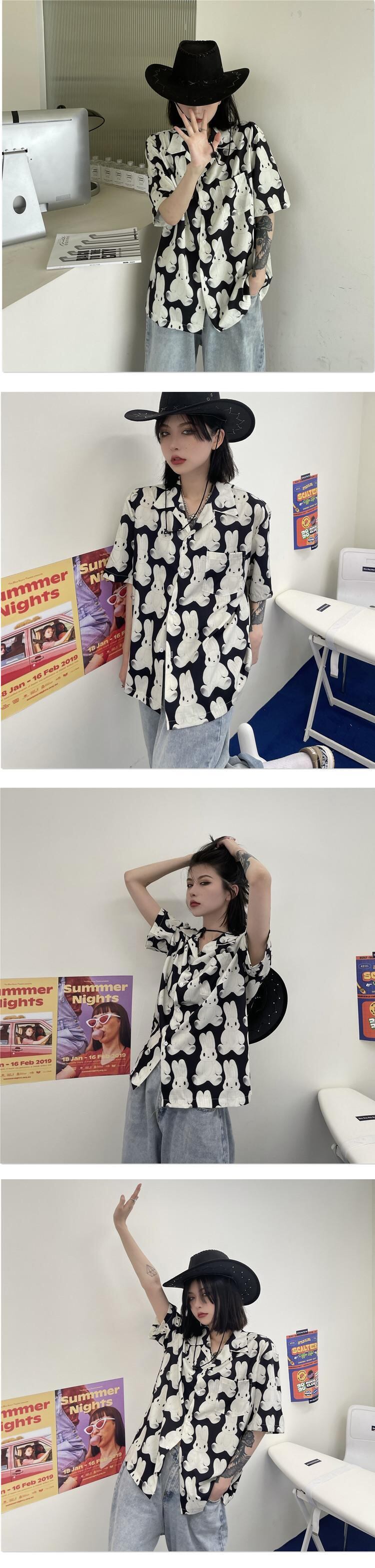 シャツ レディース夏服ルーズ韓国ファッションプリント柄トレンド 夏物 CHIL20619062774