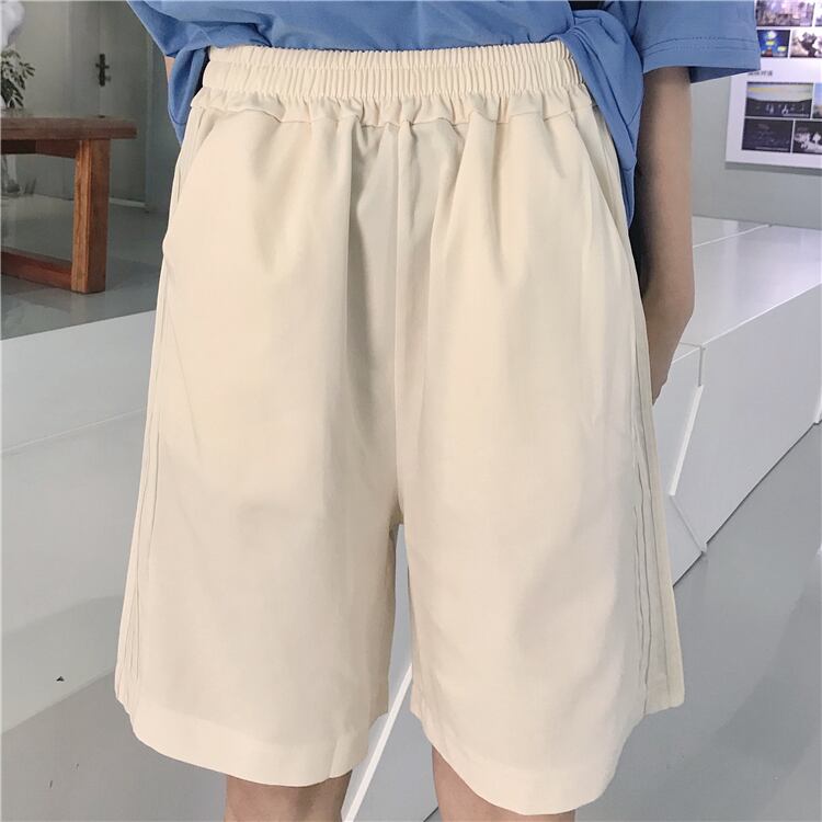 薄手パンツ レディース夏服韓国ファッショントレンドスタンダードソリッド カラーカジュアルショーツ レトロ 夏物 ソリッドカラー ステッチ CHIL11028256884