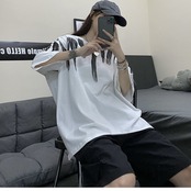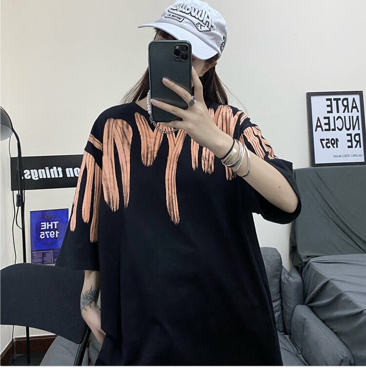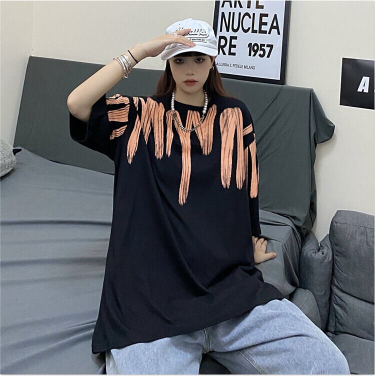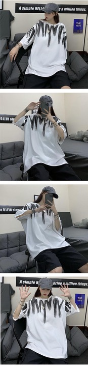 ホワイトTシャツレディース夏服スタイルプリント柄韓国ファッションルーズトレンドトップス 原宿 夏物 CHIL74632707415
