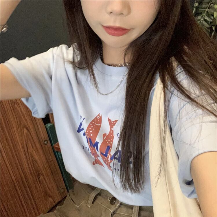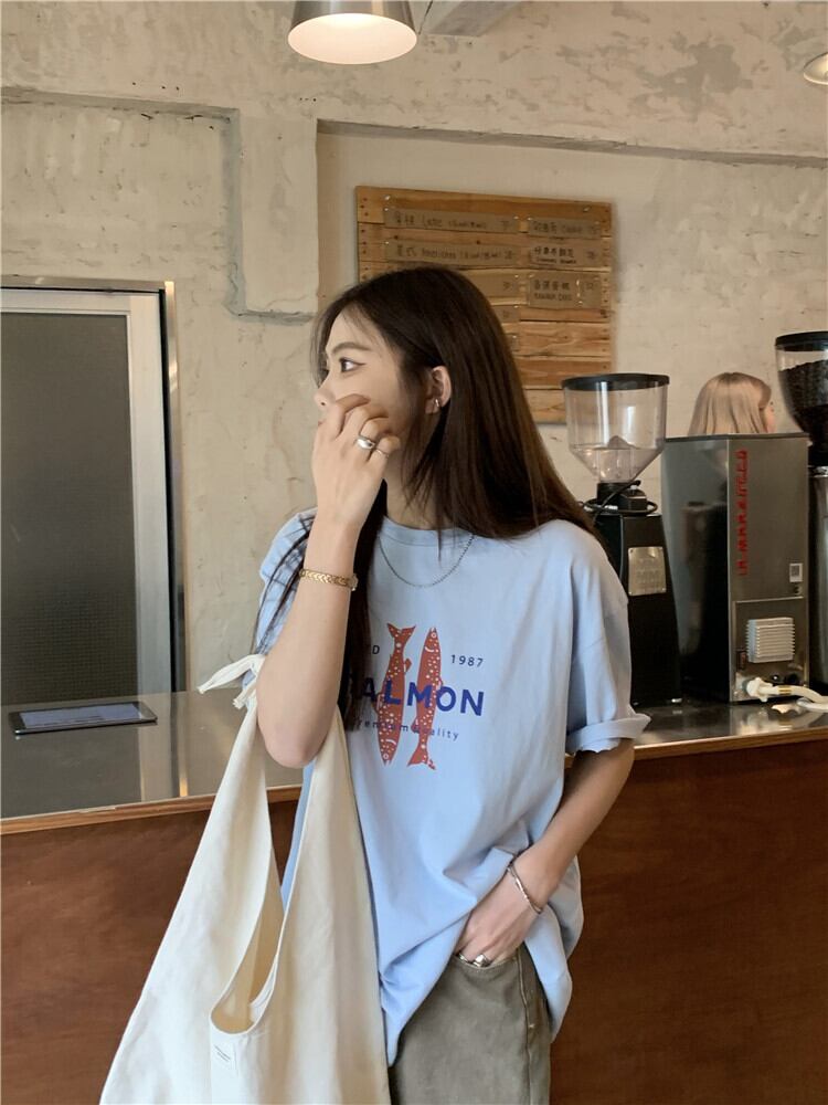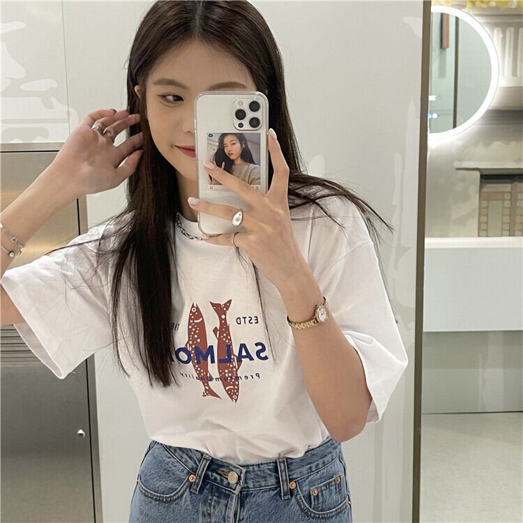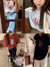 夏服ルーズ薄手プリント柄Tシャツレディース 夏物 CHIL99638257862