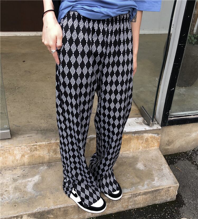 パンツ 夏服スタンダード格子柄 レトロ 夏物 CHIL56337807420