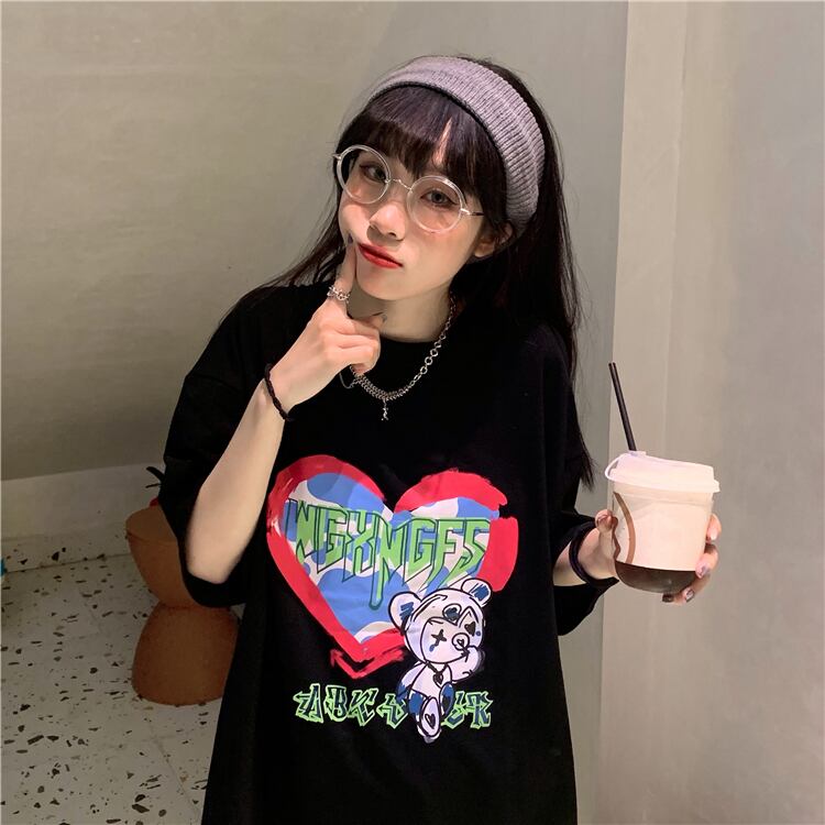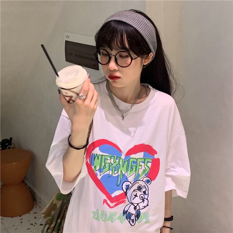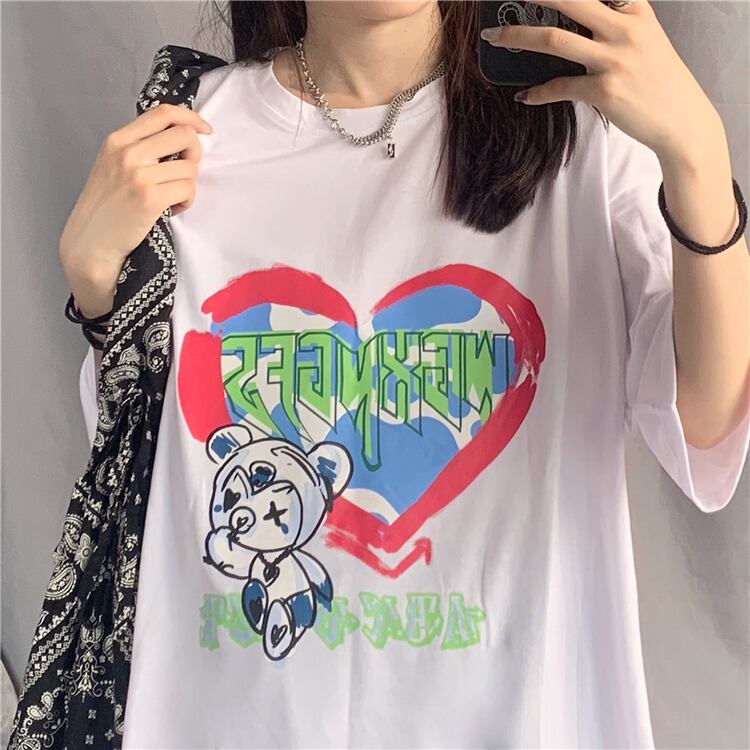 夏服トレンドスタンダードプリント柄ルーズTシャツメンズレディース レトロ 原宿 夏物 CHIL60005266393