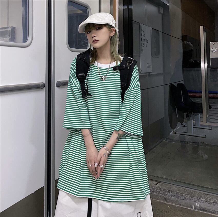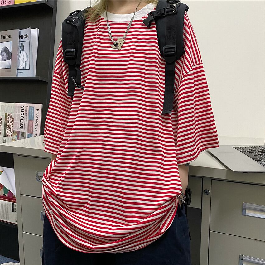 ストライプTシャツレディースメンズ夏服スタイルルーズカジュアルトップス 夏物 CHIL85570560730