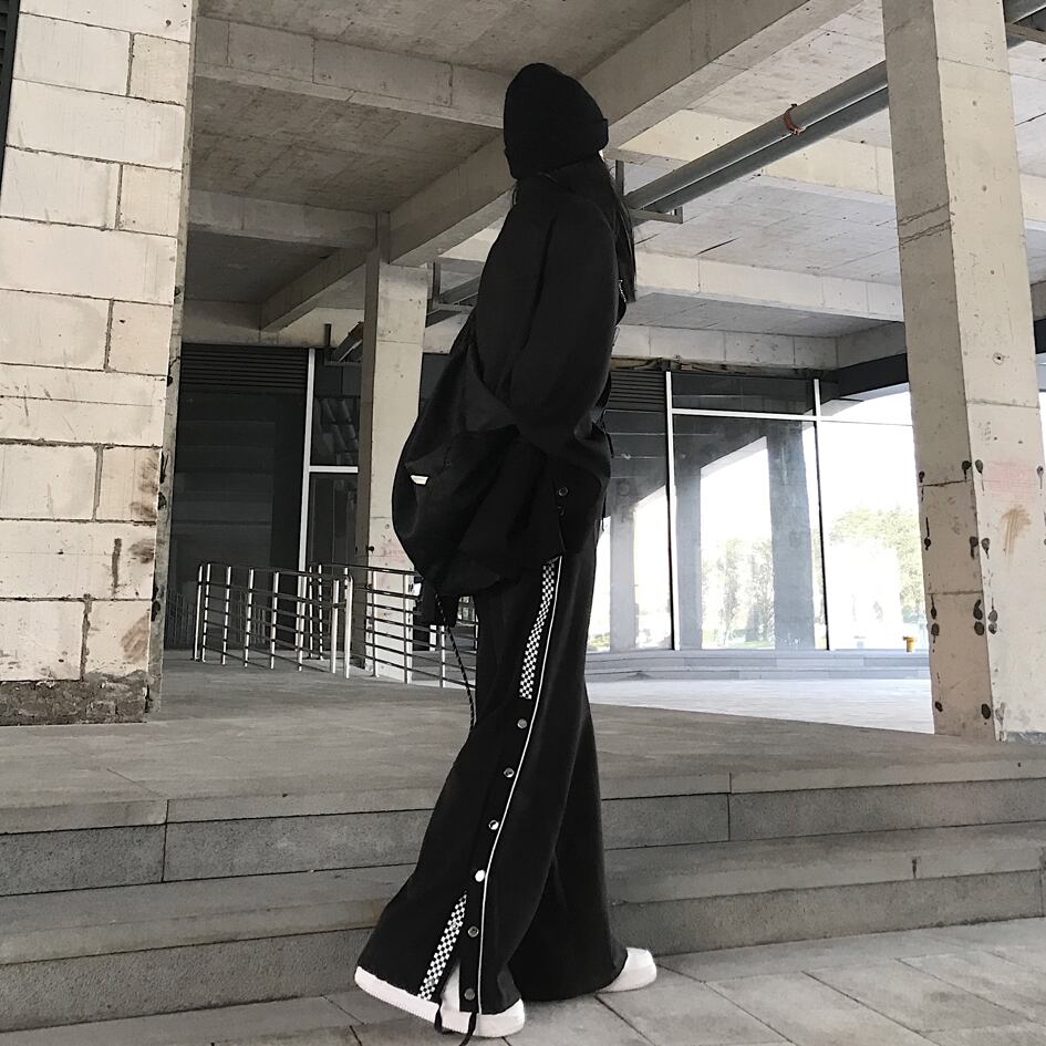 韓国ファッションスリットブラックホワイトカジュアルパンツ レディースハイウェストウェストルーズワイドレッグ ワイドパンツ スタイル ウエスト CHIL50002471376