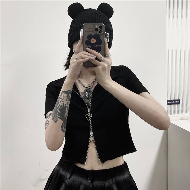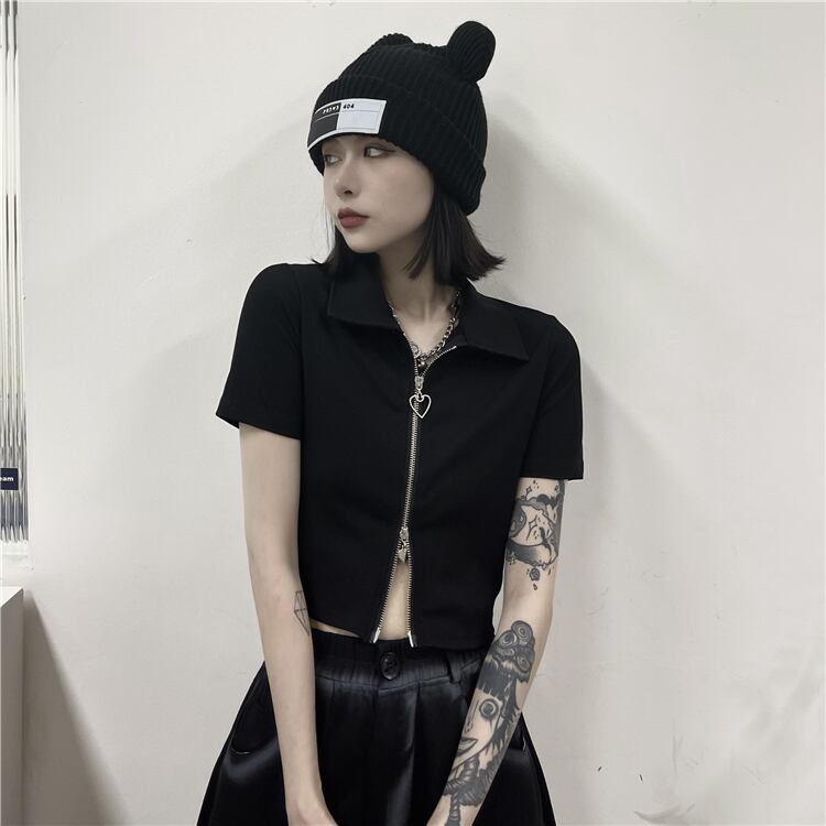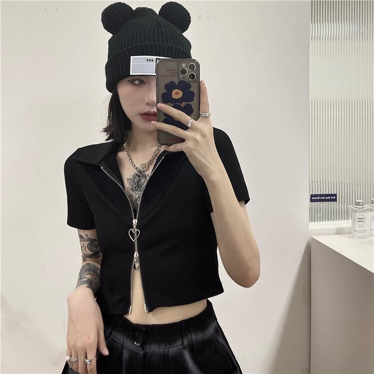ショート夏服レディース韓国ファッショントレンドダークジッパースリムトップス Tシャツ 夏物 スタイル CHIL72541981910