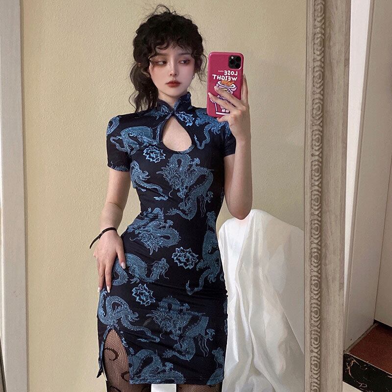 スタイルワンピーススタンダード刺繍スリムハイウェストウェスト レトロ ウエスト CHIL34461965304