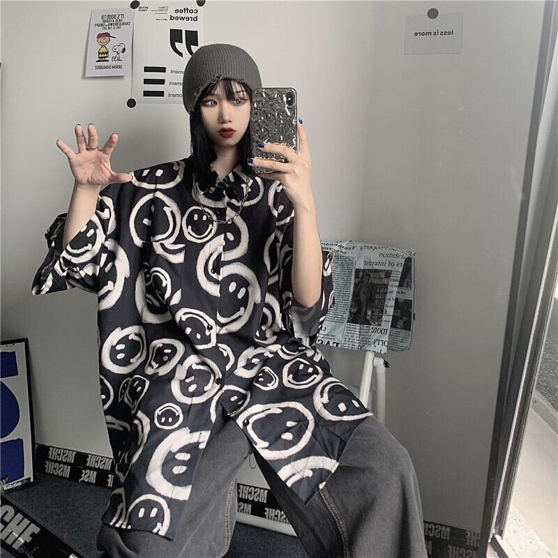 夏服シャツ レディース韓国ファッショントレンドスタンダードスタイルプリント レトロ 原宿 夏物 ボーイズ CHIL27041003553