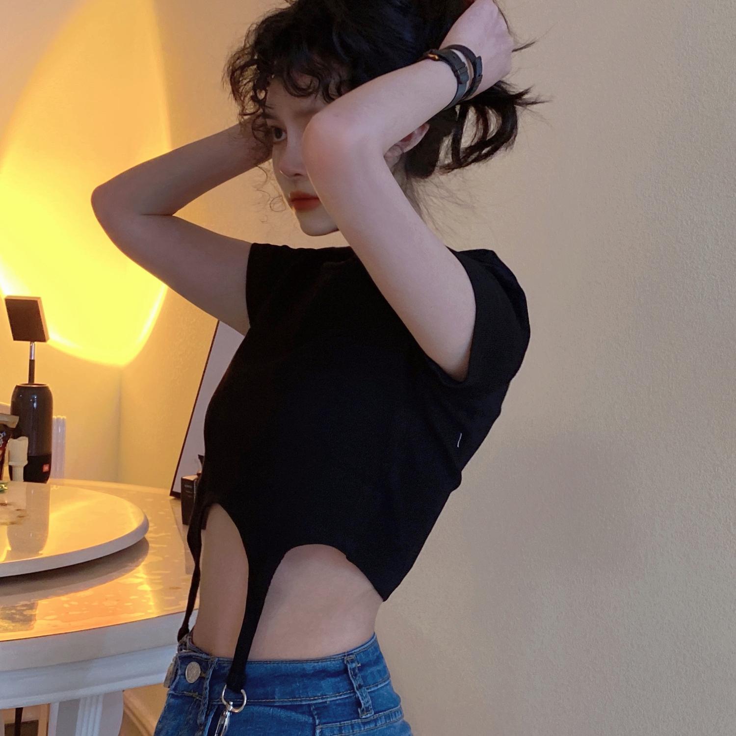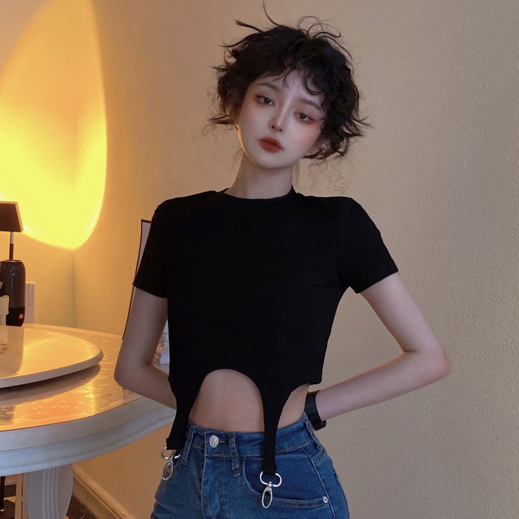 ショートコート 夏服韓国ファッショントレンドスタイルブラックスリムTシャツレディース 夏物 ボーイズ CHIL75275576567