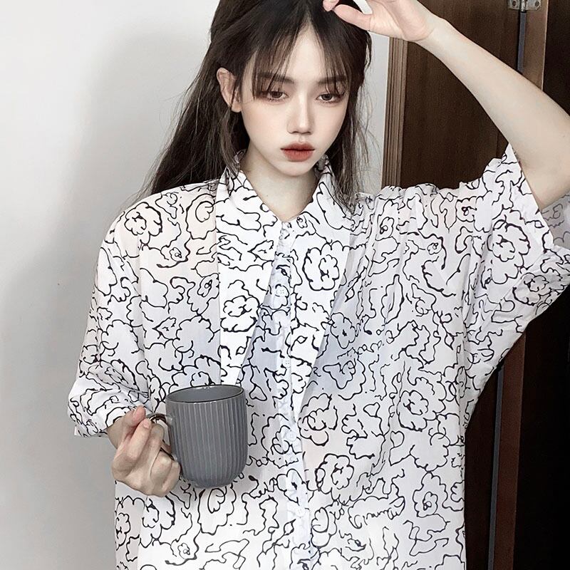 薄手シャツ レディース夏服カラールーズスリーブ 大きめサイズ 夏物 ミドル丈 CHIL12636318628