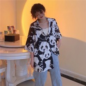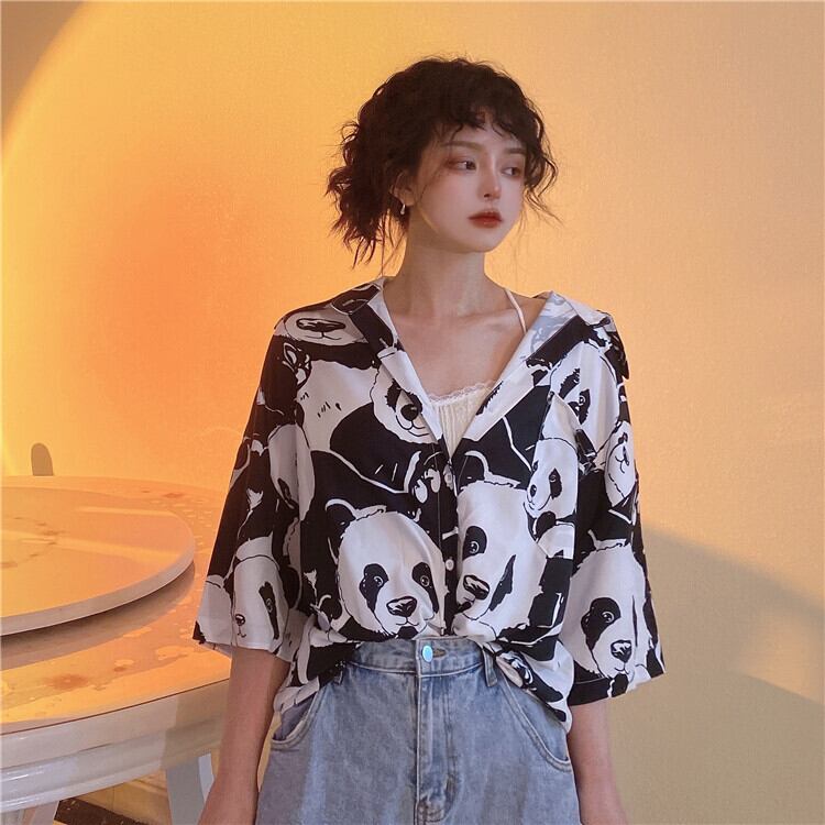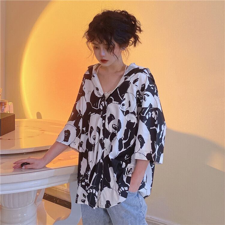 ホワイトシャツ レディーススタンダードスタイルプリント柄ルーズ薄手 レトロ ボーイズ CHIL70322826773