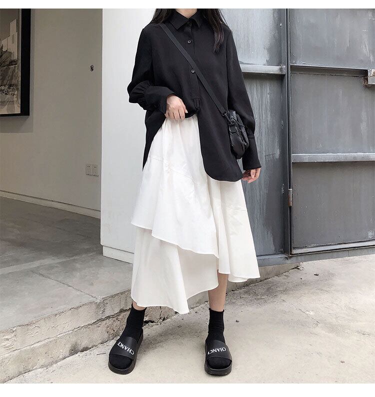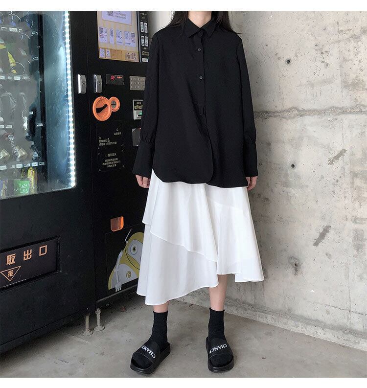 ブラックシャツ レディース秋物夏服スタンダードルーズジャケット ロング レトロ 夏物 オータム 長袖 CHIL46375971356