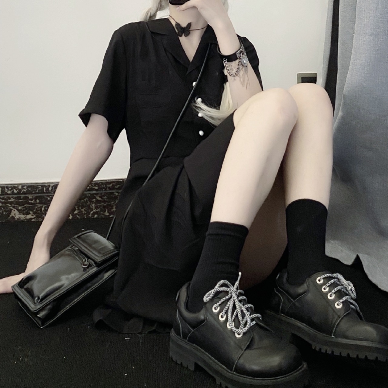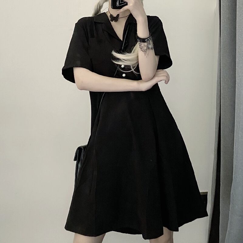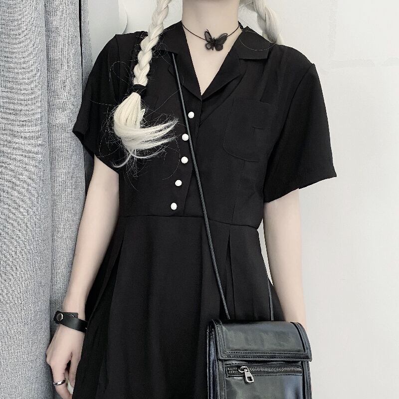 ブラックスカート レディーススタンダードダークVネックワンピース レトロ CHIL67065179517