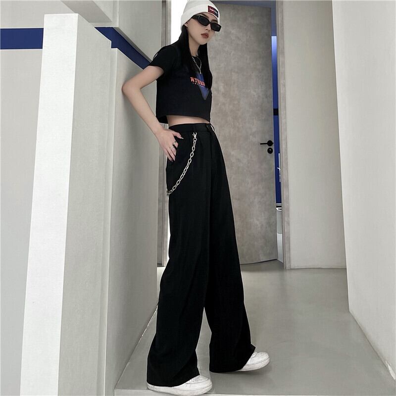 ブラックパンツ レディースルーズ夏服薄手トレンド 夏物 ワイドレッグ ワイドパンツ CHIL57982640747