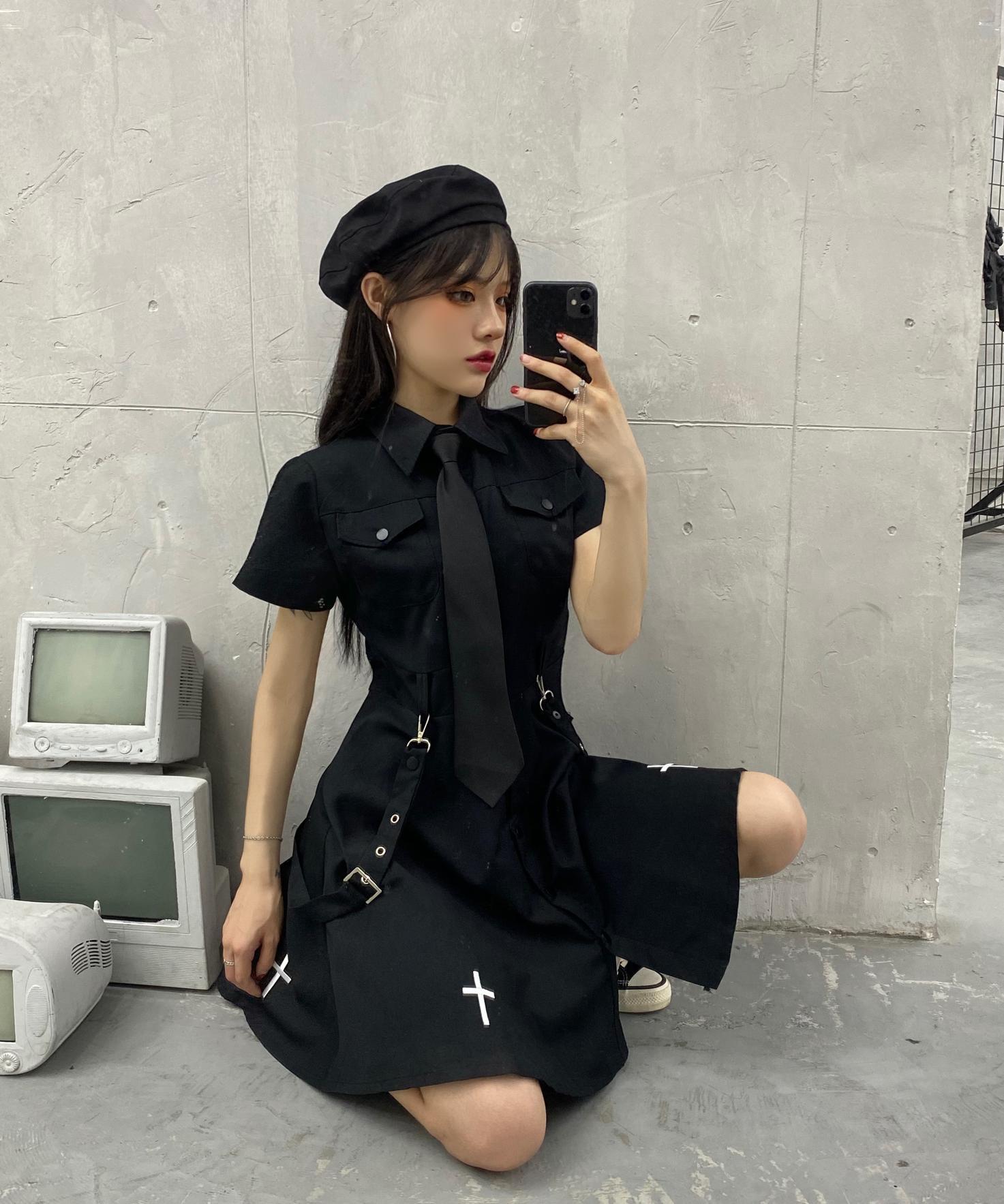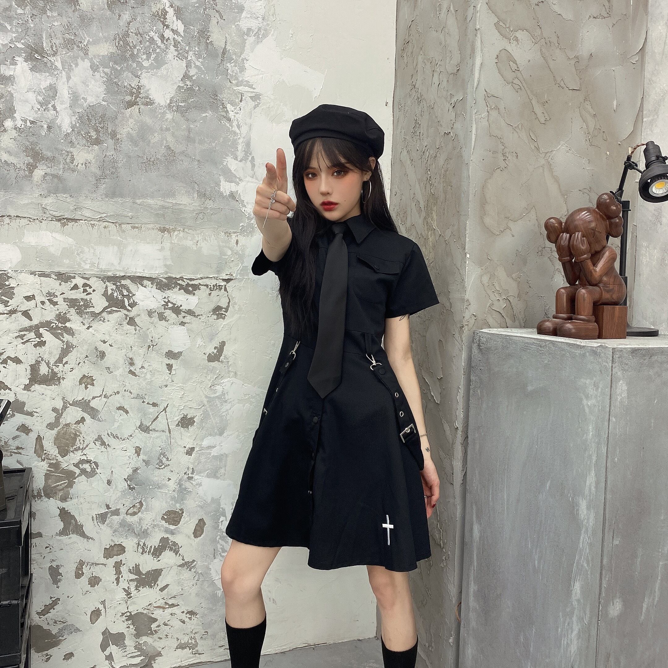 ブラックシャツ ワンピースレディース夏服ダークスタイルスカート 夏物 CHIL97695777852