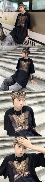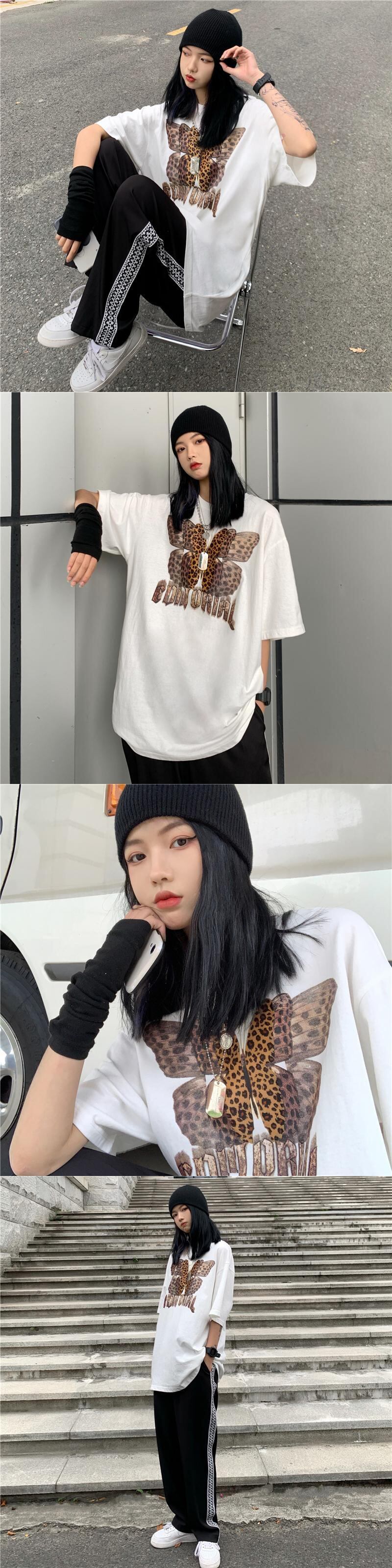 夏服レディース韓国ファッショントレンドスタイルButterflyデザイン プリントルーズトップス Tシャツ 原宿 夏物 ボーイズ デーモン3277906994
